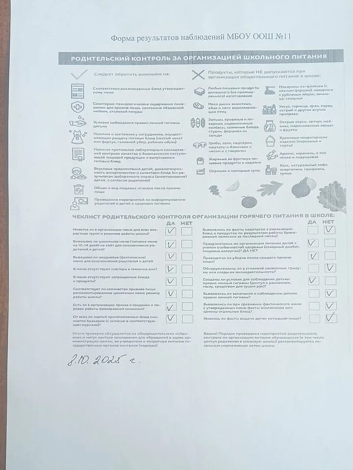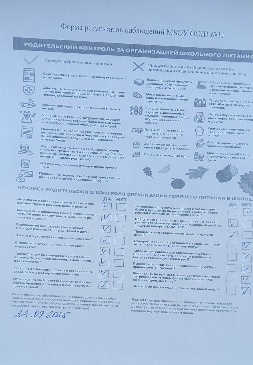 Памятка для родителей, осуществляющих контроль за организацией питания учащихся